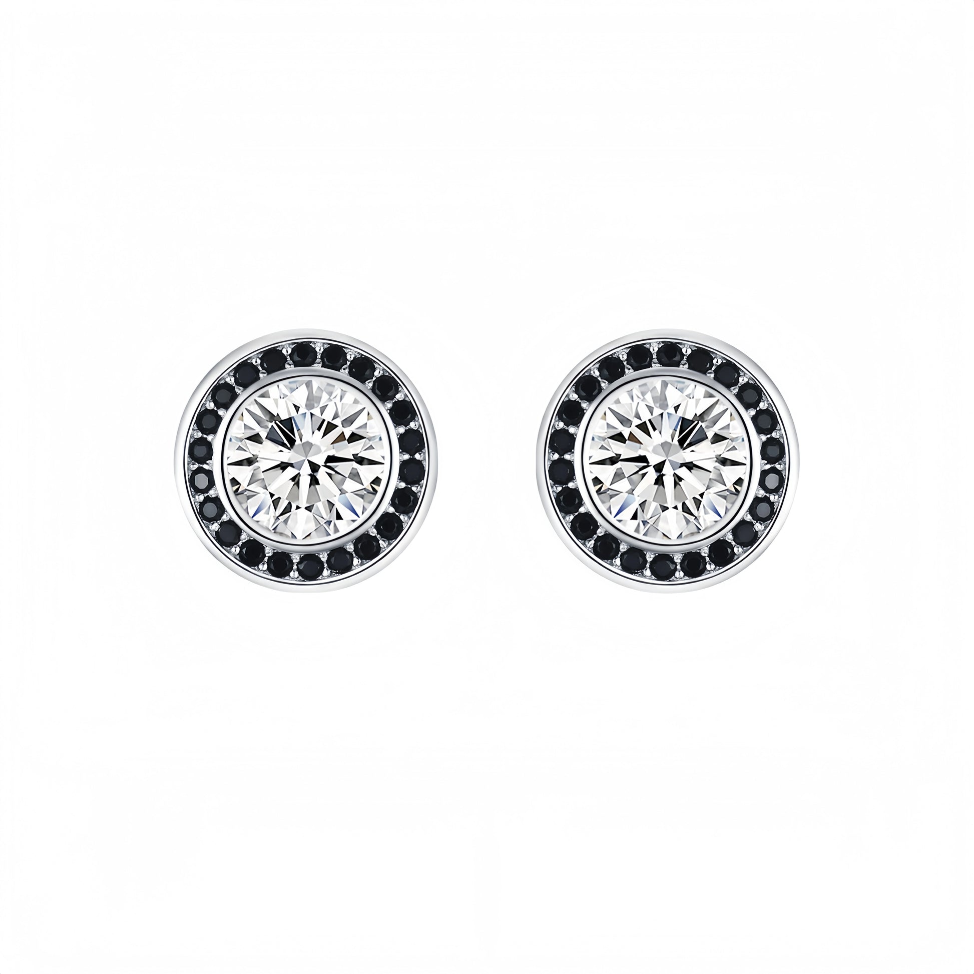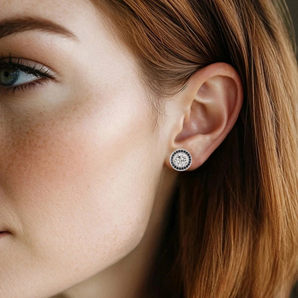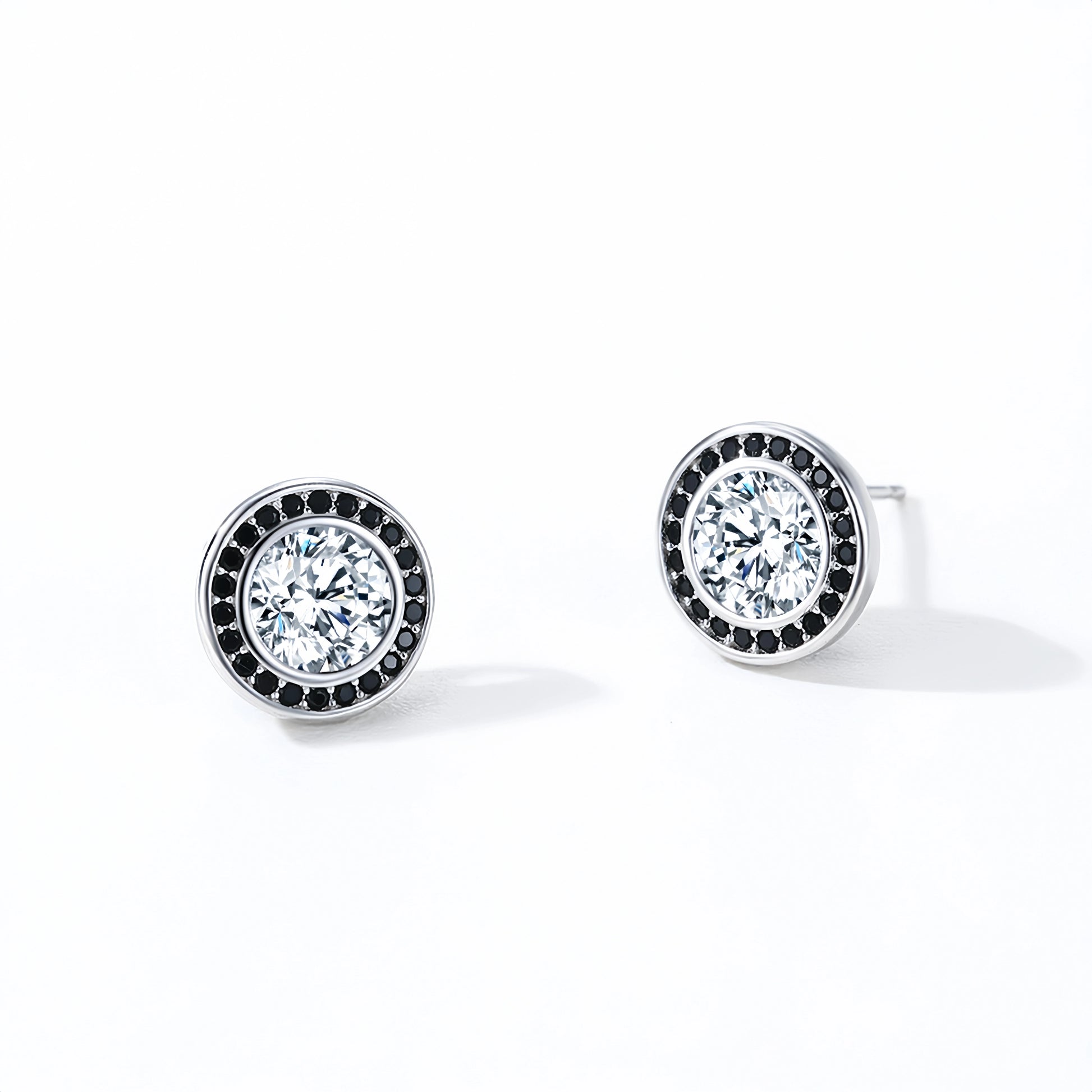 Make a brilliant statement with these captivating sterling silver stud earrings. They feature a stunning, brilliant-cut white cubic zirconia at the center, radiating with pure light, and are beautifully framed by a halo of deep black cubic zirconia stones. This striking black and white contrast creates a look that is both timeless and effortlessly modern.