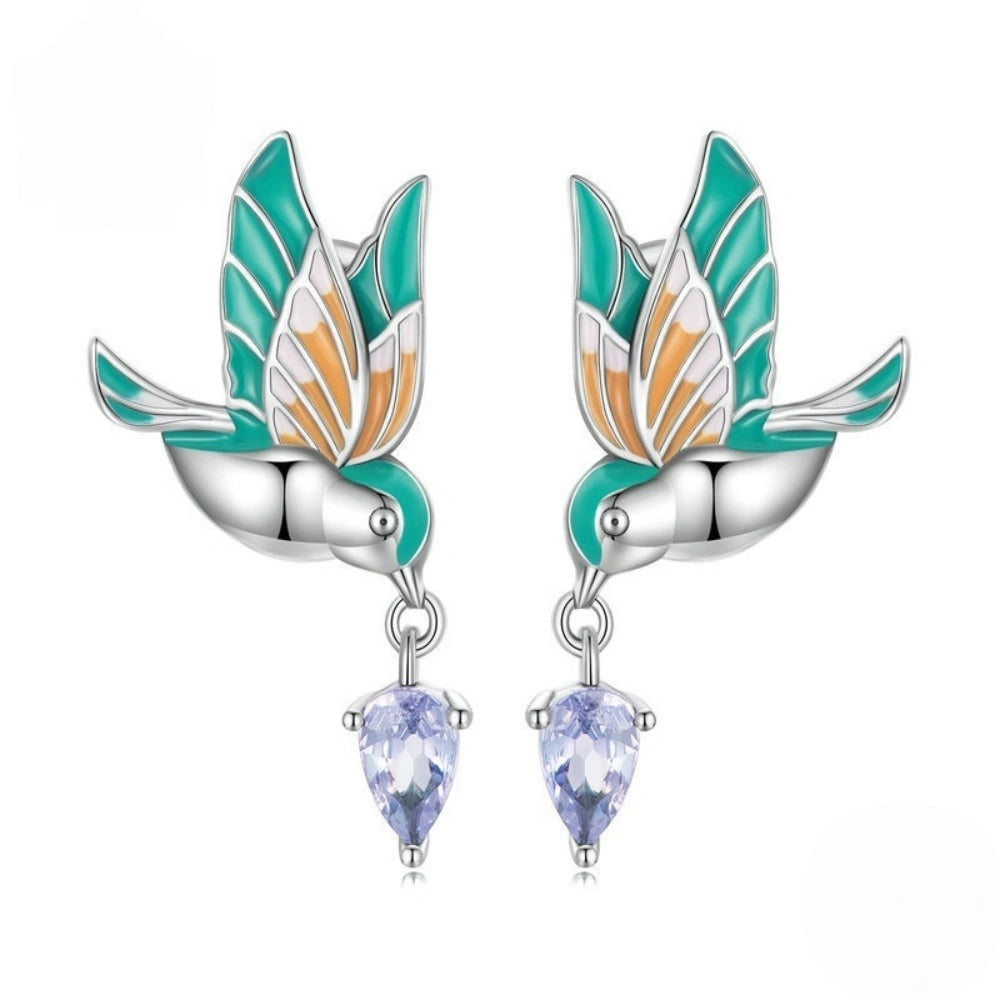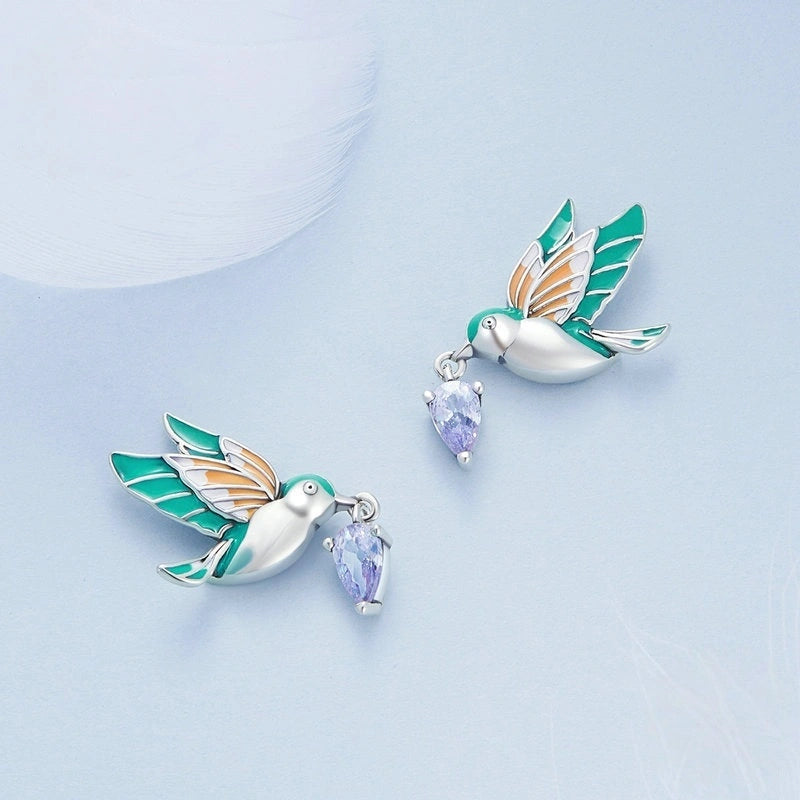 As the first light of morning arrives, the hummingbird becomes a messenger of freedom, bringing hope and energy to your day. These finely crafted stud earrings capture the delicate moment of the hummingbird poised in mid-flight, brought to life with vivid enamel accents in fresh green and warm orange—like nature’s own palette glowing gently at your ears.