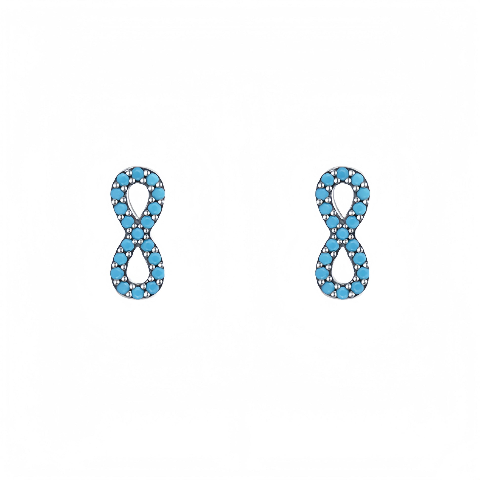Embrace a symbol of endless love and possibilities with these beautiful sterling silver infinity stud earrings. Each earring features the classic infinity symbol, delicately crafted and adorned with vibrant, genuine turquoise stones. The vivid blue-green of the turquoise is believed to bring good fortune, protection, and a sense of calm.