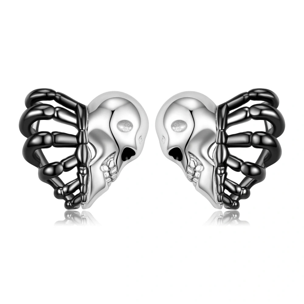 Break boundaries. Define eternity. These striking earrings boldly unite two contrasting elements: one half is a smooth, shining sterling silver heart, representing tenderness and love; the other is an intricately textured bone structure, symbolizing strength and resilience. Together, they form one complete heart—a powerful emblem of the coexistence of love and strength.